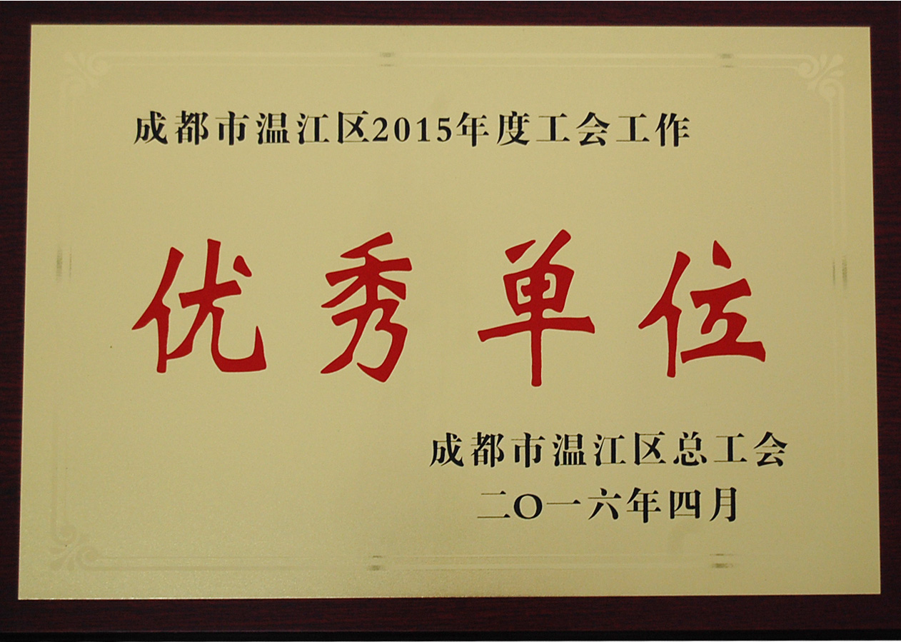 成都市溫江區(qū)總工會(huì)召開2015年度工會(huì)工作表彰大會(huì),我公司工會(huì)榮獲成都市溫江區(qū)2015年度工會(huì)工作優(yōu)秀單位光榮稱號(hào),并予以授牌。