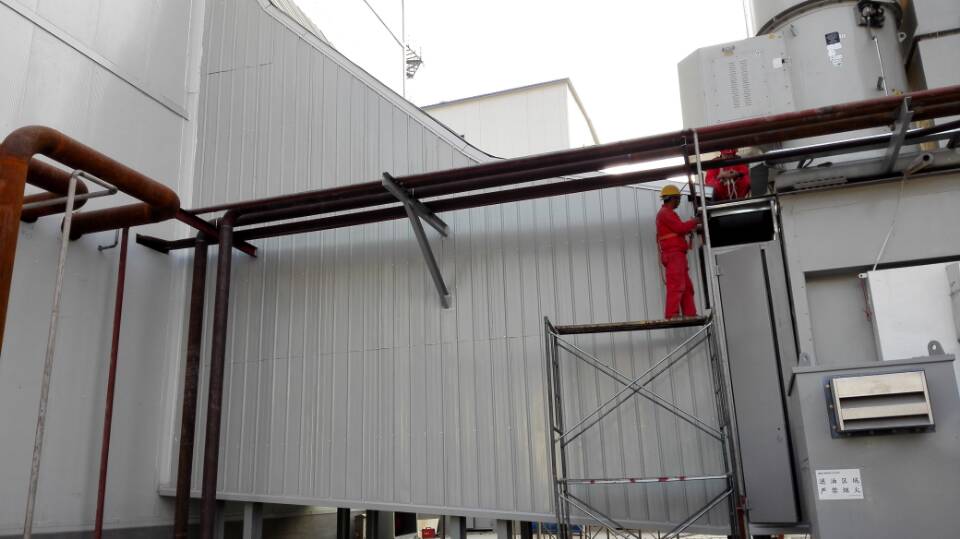 天津華電北辰分布式能源站噪聲治理項目發(fā)包方為華電重工股份有限公司,業(yè)主為中國華電科工集團有限公司。施工內(nèi)容包含了吸隔聲墻體供貨及安裝、隔聲門制作供貨及安裝、彩鋼板安裝、集控室內(nèi)裝飾等。